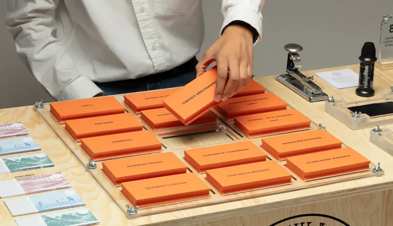 A través de Ministerio de Especulación Económica, Alejandro plantea escenarios futuros en donde los diferentes sistemas económicos se reconfiguran a partir de valores alternativos, generando nuevas posibilidades y dinámicas.