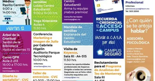 Consulta los eventos que las diferentes áreas tienen para ti y aprovecha al máximo la experiencia de ser parte de la Comunidad Tec campus Puebla.
