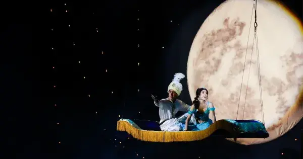 A nivel de producción, uno de los principales retos de la obra fue la construcción de la alfombra mágica. El equipo técnico superó el desafío al diseñar y construir una estructura escénica capaz de alcanzar los 3 metros de altura. Su realización requirió un sistema de poleas y una inversión de 6 horas de trabajo.